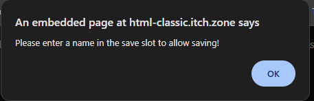 Please enter a name in the save slot to allow saving!